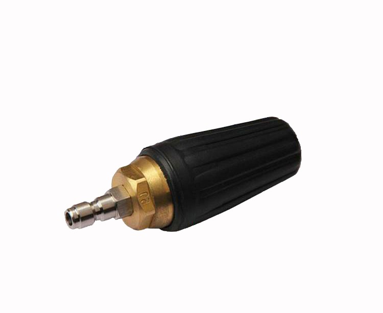 由高壓水推動旋轉(zhuǎn),噴頭體里面的轉(zhuǎn)子在水流的推動下,圍繞軸線圓周旋轉(zhuǎn),噴射成一個15°-30°的圓面,,高強(qiáng)度點(diǎn)射和大面積覆蓋大噴射動力,清洗力度大,效果好。